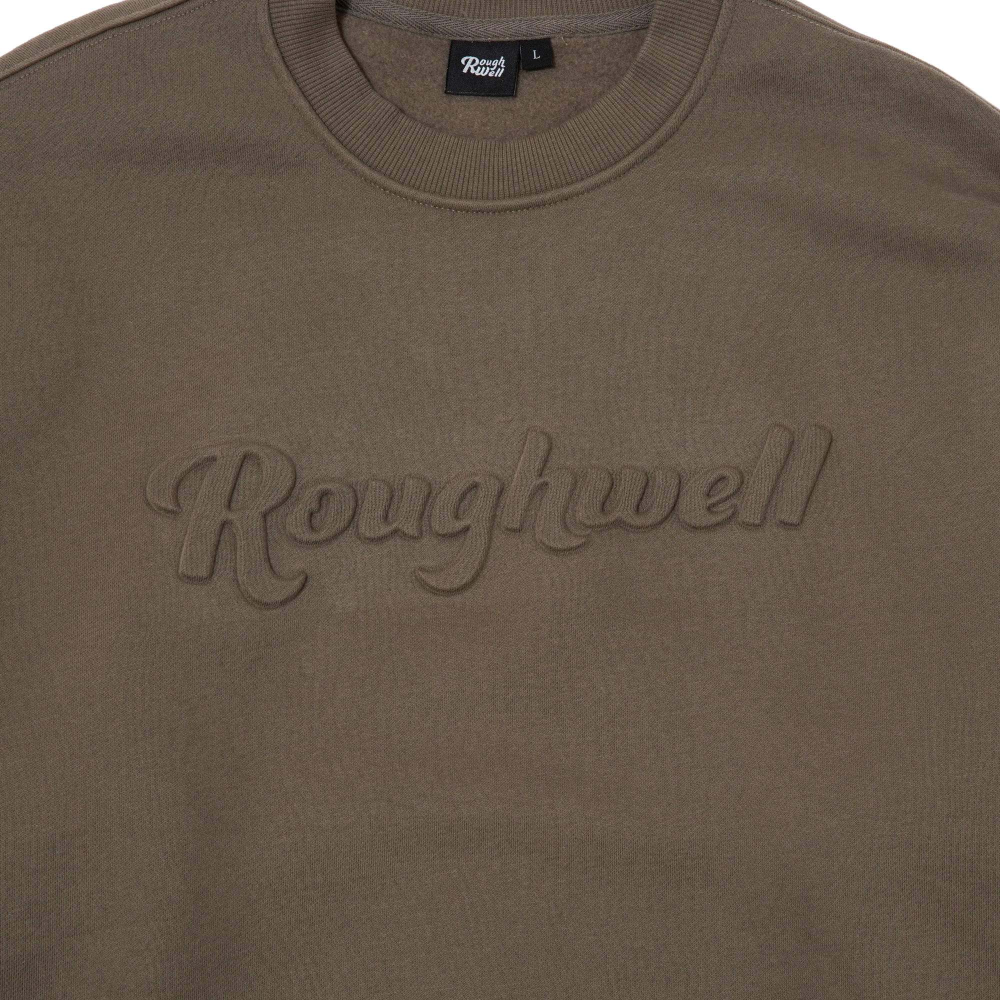立体的に表現されたエンボスロゴが印象的な、ヘビーウエイトクルースウェット。